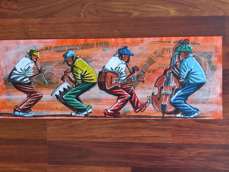 Dumisani Sibisi was born in Soweto, Johannesburg in 1962 and is of the Zulu Tribe. He was educated in Soweto at Emaweni Lower Primary (1969 - 1972), Enkanyezini Higher Primary (1973 - 1975) and received his secondary education at Jabulani Technical High (1977 - 1983). He continues to live and work in Soweto . He was taught by sculptor Sydney Khumalo, as well as by Ezrom Legae. Exhibiting since the age of 15, Sibisi has included his work in shows in Australia, Portugal, Canada and the United States. Dumisani Sibisi is an artist shaped by the hopeful atmosphere following the 1994 democratic elections in South Africa. His collages and three-dimensional images are chiefly of the townships, which Sibisi paints to record a particular reality of that particular time. He was one of the five South African artists whose paintings were used as massive billboards at 50 locations around South Africa in the outdoor marketing campaign of the ICC Cricket World Cup 2003. Their paintings depicted typical South African scenes with an added twist to welcome teams from the 14 competing nations to the 2003 Cricket World Cup. To welcome the English team Dumisani Sibisi's beautiful township scene showed a minibus taxi with a difference: an addition to the roof made it a "local style" double-decker London bus. The newspaper work in the background was all cricket related.